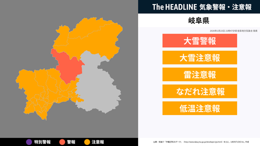対象の市区町村と警報・注意報