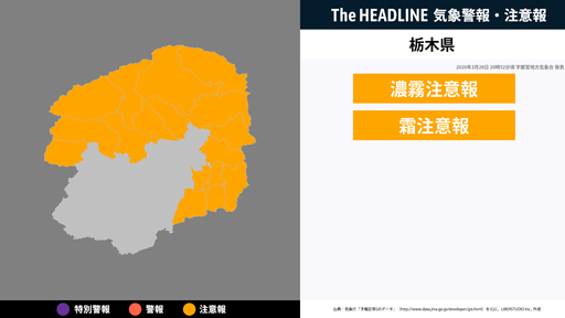 9月20日23時50分、宇都宮地方気象台は、栃木県に発表されている警報・注意報の経過、予測、防災上の留意点などを解説するために発表していた気象情報を更新した。