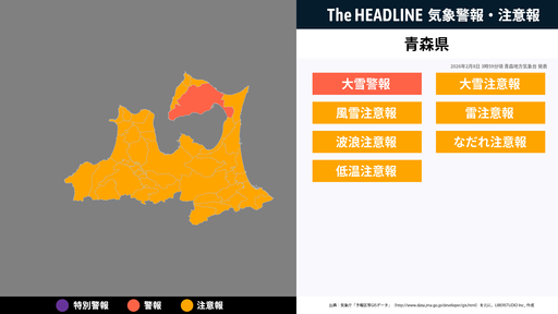 10月2日15時54分、青森地方気象台は、青森県に発表されている警報・注意報の経過、予測、防災上の留意点などを解説するために発表していた気象情報を更新した。