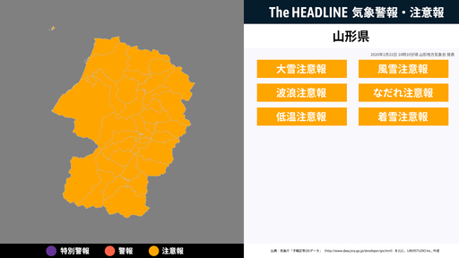 10月1日22時5分、土砂災害の危険性の高まりから山形地方気象台より山形県に発表されていた、土砂災害警戒情報が解除された。