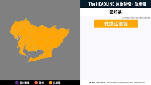 10月27日16時35分、名古屋地方気象台は、愛知県に発表されている警報・注意報の経過、予測、防災上の留意点などを解説するために発表していた気象情報を更新した。