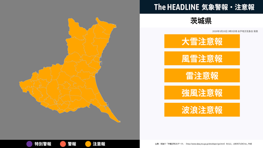 10月29日6時11分、水戸地方気象台は、茨城県に発表されている警報・注意報の経過、予測、防災上の留意点などを解説するために発表していた気象情報を更新した。