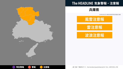 12月9日15時33分、神戸地方気象台は、警報・注意報に先立ち注意・警戒を呼びかけるため兵庫県に発表していた気象情報を更新した。