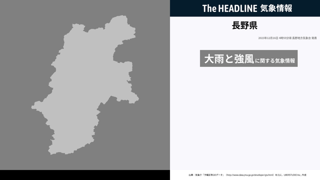 12月16日4時55分、長野地方気象台は、警報・注意報に先立ち注意・警戒を呼びかけるため長野県に発表していた気象情報を更新した。