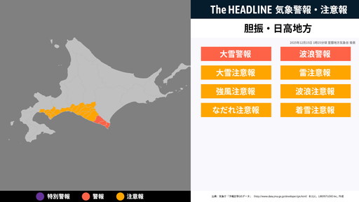 12月23日7時11分、旭川地方気象台は、上川・留萌地方に発表されている警報・注意報の経過、予測、防災上の留意点などを解説するために発表していた気象情報を更新した。