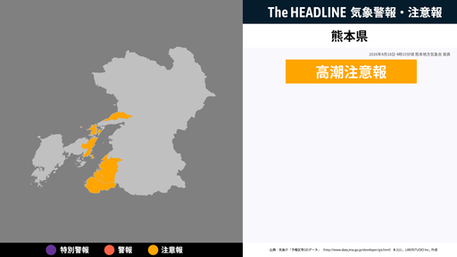 12月24日22時14分、熊本地方気象台は、熊本県に発表されている警報・注意報の経過、予測、防災上の留意点などを解説するために発表していた気象情報を更新した。