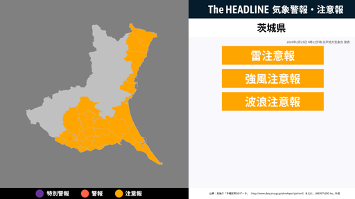 1月22日6時10分、水戸地方気象台は、茨城県に発表されている警報・注意報の経過、予測、防災上の留意点などを解説するために発表していた気象情報を更新した。