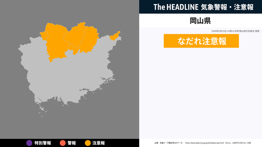 1月25日9時26分、岡山地方気象台は、岡山県に発表されている警報・注意報の経過、予測、防災上の留意点などを解説するために発表していた気象情報を更新した。