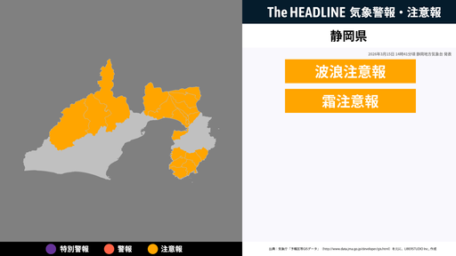 2月12日5時5分、静岡地方気象台は、静岡県に発表されている警報・注意報の経過、予測、防災上の留意点などを解説するために発表していた気象情報を更新した。