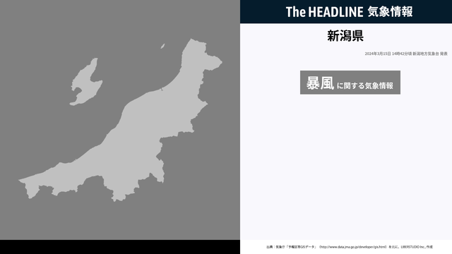 3月15日14時42分、新潟地方気象台は、新潟県に発表されている警報・注意報の経過、予測、防災上の留意点などを解説するために発表していた気象情報を更新した。