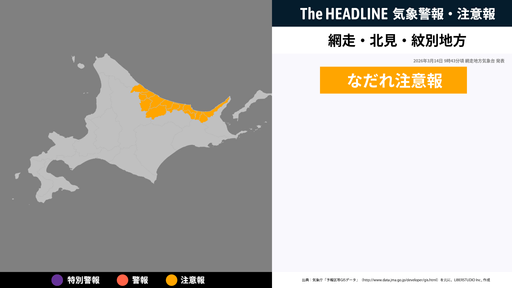 3月29日16時26分、釧路地方気象台は、釧路・根室地方に発表されている警報・注意報の経過、予測、防災上の留意点などを解説するために発表していた気象情報を更新した。