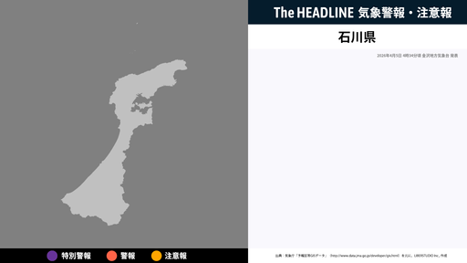 石川県、大雨に関する気象情報が更新