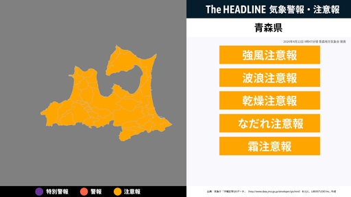 3月28日15時31分、青森地方気象台は、青森県に発表されている警報・注意報の経過、予測、防災上の留意点などを解説するために黄砂に関する気象情報を発表した。