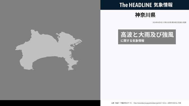 4月9日17時15分、横浜地方気象台は、神奈川県に発表されている警報・注意報の経過、予測、防災上の留意点などを解説するために発表していた気象情報を更新した。