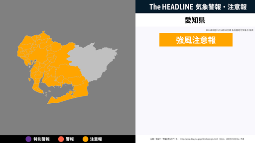 4月9日11時7分、名古屋地方気象台は、愛知県に発表されている警報・注意報の経過、予測、防災上の留意点などを解説するために発表していた気象情報を更新した。