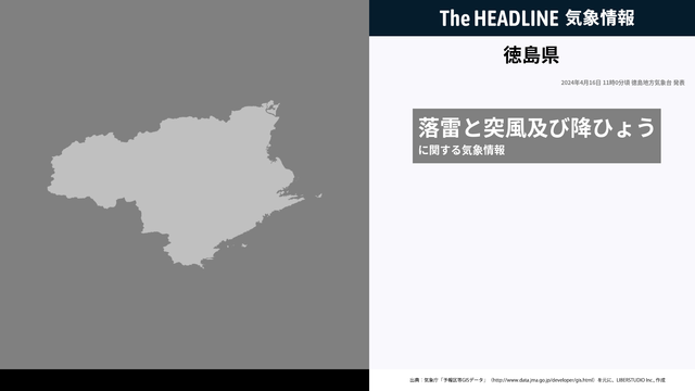 4月16日11時0分、徳島地方気象台は、徳島県に発表されている警報・注意報の経過、予測、防災上の留意点などを解説するために発表していた気象情報を更新した。
