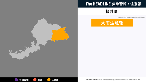 5月13日6時1分、福井地方気象台は、福井県に発表されている警報・注意報の経過、予測、防災上の留意点などを解説するために発表していた気象情報を更新した。
