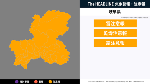 5月28日21時0分、土砂災害の危険性の高まりから岐阜県 岐阜地方気象台より岐阜県に発表されていた、土砂災害警戒情報が解除された。