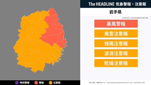 対象の市区町村と警報・注意報