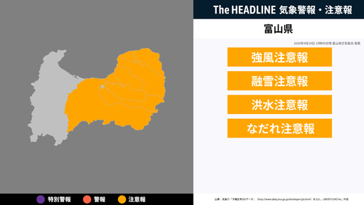 富山県、大雨と雷及び突風に関する気象情報が更新