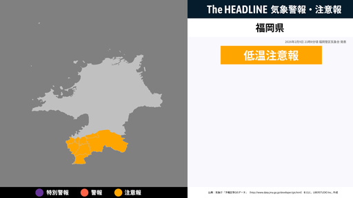 6月6日21時33分、福岡管区気象台は、警報・注意報に先立ち注意・警戒を呼びかけるため福岡県に発表していた気象情報を更新した。