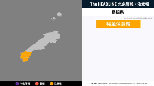 7月2日20時51分、松江地方気象台は、警報・注意報に先立ち注意・警戒を呼びかけるため島根県に発表していた気象情報を更新した。