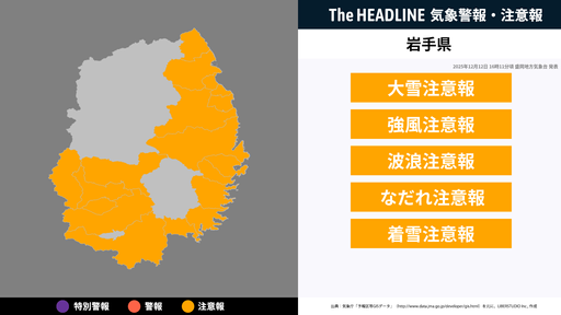 7月11日5時59分、盛岡地方気象台は、岩手県に発表されている警報・注意報の経過、予測、防災上の留意点などを解説するために発表していた気象情報を更新した。