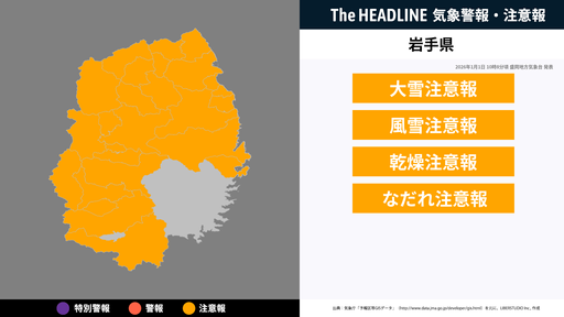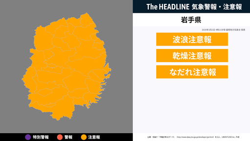 7月9日9時20分、土砂災害の危険性の高まりから岩手県 盛岡地方気象台より岩手県に発表されていた、土砂災害警戒情報が解除された。