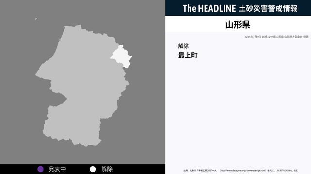 7月9日16時12分、山形県の土砂災害警戒情報が解除された