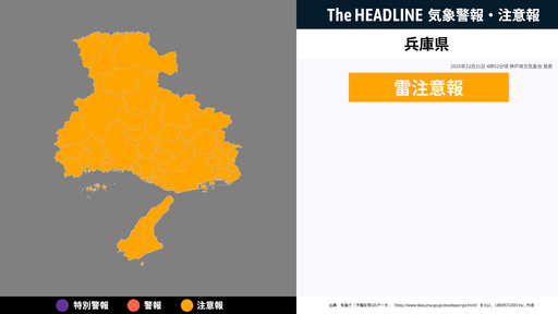兵庫県、突風と落雷に関する気象情報が更新