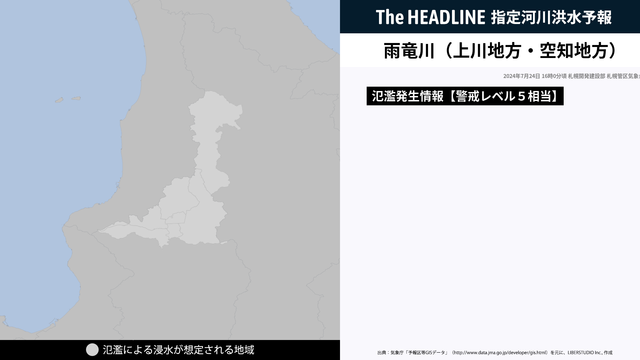 7月24日16時00分、札幌開発建設部と札幌管区気象台は、雨竜川で氾濫が発生したと発表した。