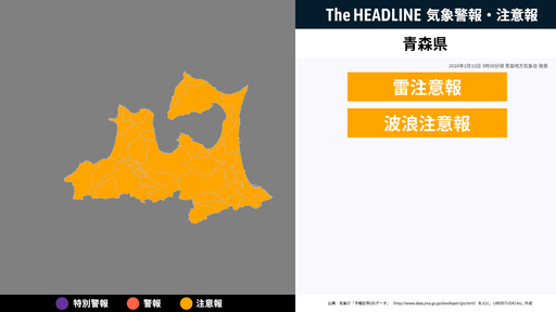 青森県、大雨と雷及びひょうに関する気象情報が更新