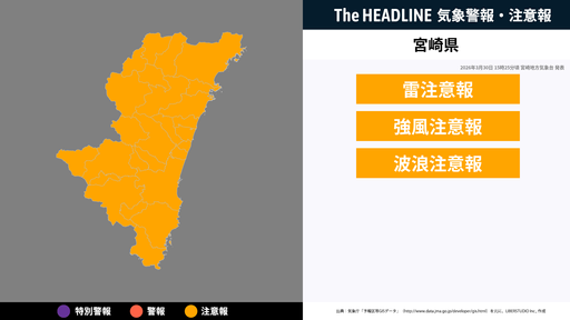 宮崎県、落雷と突風に関する気象情報が更新