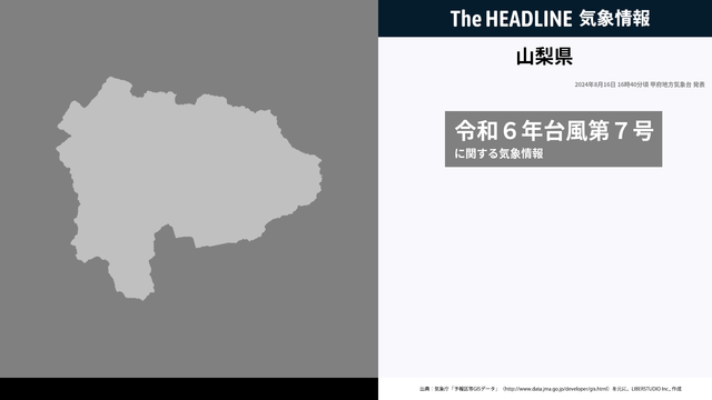 8月16日16時40分、甲府地方気象台は、山梨県に発表されている警報・注意報の経過、予測、防災上の留意点などを解説するために発表していた気象情報を更新した。