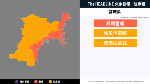 8月26日16時7分、仙台管区気象台は、宮城県に発表されている警報・注意報の経過、予測、防災上の留意点などを解説するために発表していた気象情報を更新した。
