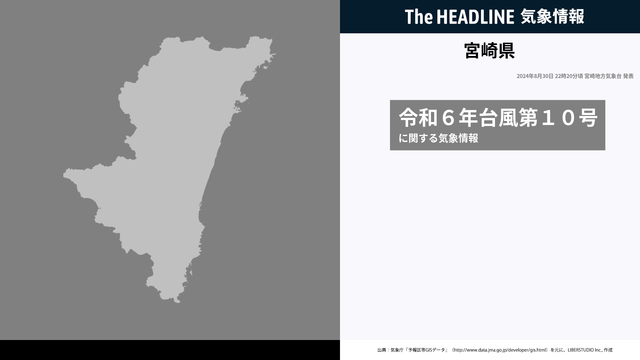 8月30日22時20分、宮崎地方気象台は、宮崎県に発表されている警報・注意報の経過、予測、防災上の留意点などを解説するために発表していた気象情報を更新した。