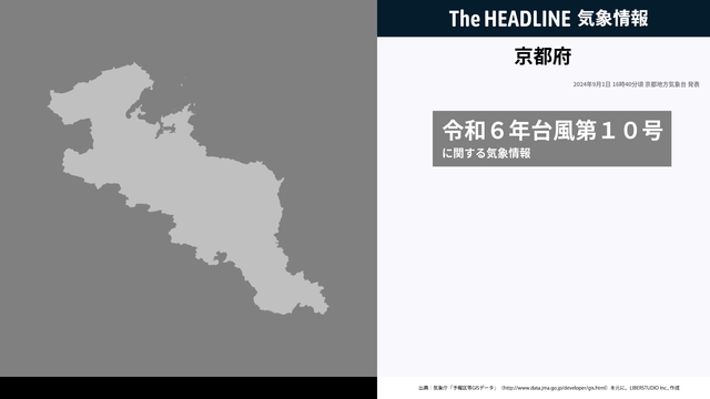 京都府、令和6年 台風第10号に関する気象情報が更新