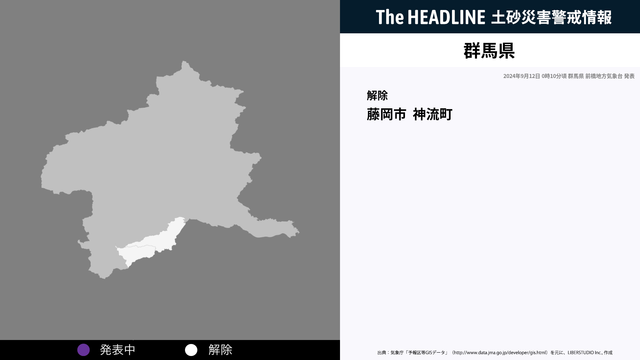 9月12日0時10分、群馬県の土砂災害警戒情報が解除された