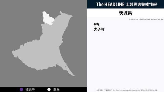 9月15日23時20分、茨城県の土砂災害警戒情報が解除された