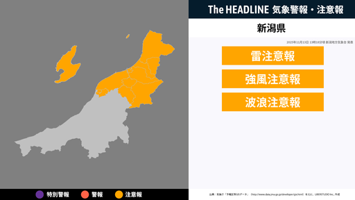 9月20日19時5分、土砂災害の危険性の高まりから新潟県 新潟地方気象台より新潟県に発表されていた、土砂災害警戒情報が解除された。