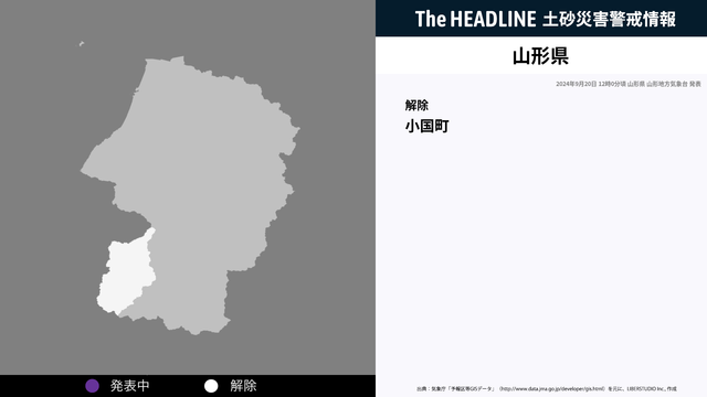 9月20日12時0分、山形県の土砂災害警戒情報が解除された