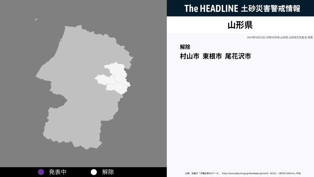 9月22日20時20分、山形県の土砂災害警戒情報が解除された