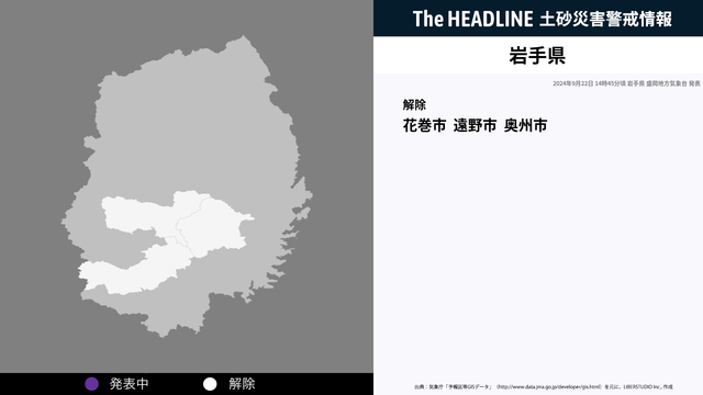 9月22日14時45分、岩手県の土砂災害警戒情報が解除された