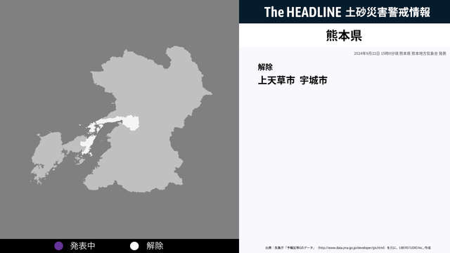 9月22日15時0分、熊本県の土砂災害警戒情報が解除された
