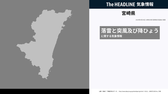 9月30日16時0分、宮崎地方気象台は、宮崎県に発表されている警報・注意報の経過、予測、防災上の留意点などを解説するために発表していた気象情報を更新した。