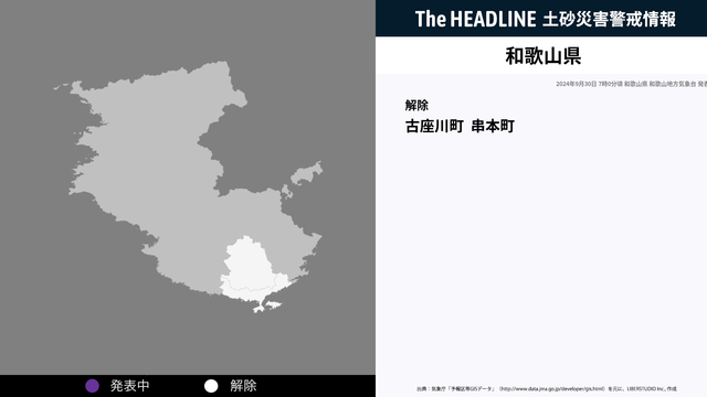 9月30日7時0分、和歌山県の土砂災害警戒情報が解除された