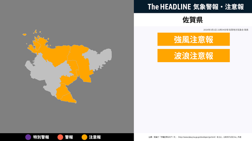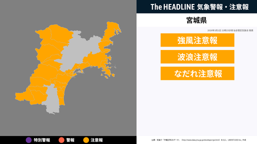 対象の市区町村と警報・注意報