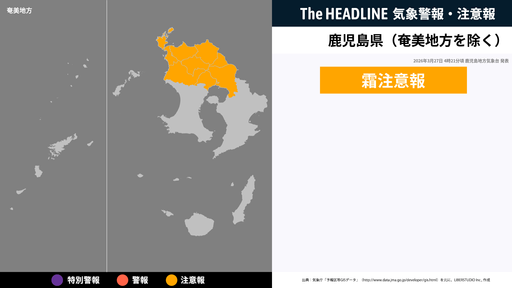 10月19日22時43分、鹿児島地方気象台は、鹿児島県(奄美地方を除く)に発表されている警報・注意報の経過、予測、防災上の留意点などを解説するために発表していた気象情報を更新した。