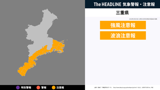 11月2日16時20分、津地方気象台は、三重県に発表されている警報・注意報の経過、予測、防災上の留意点などを解説するために発表していた気象情報を更新した。