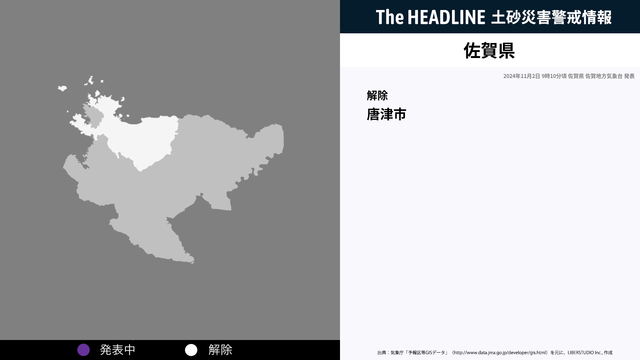 11月2日9時10分、佐賀県の土砂災害警戒情報が解除された